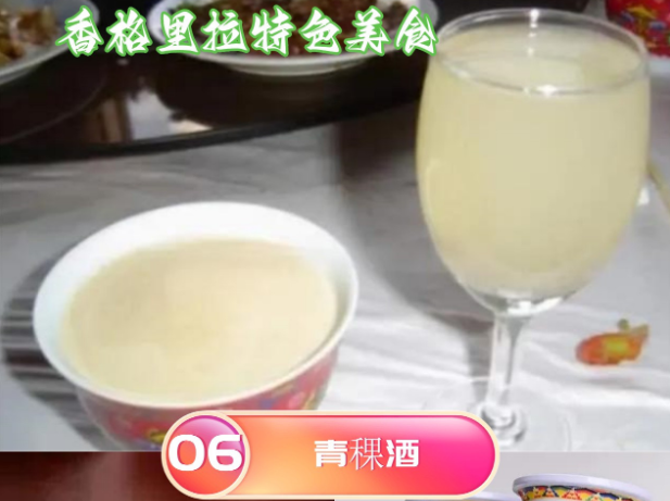 青稞酒是用高原特有的青稞酿制而成的,已经有上千年的历史了。它是藏族人民最喜欢喝的一种酒。酒味绵柔,清香扑鼻,虽烈但不醉人,非常好喝。青稞酒也是喜庆过节必备的饮品。