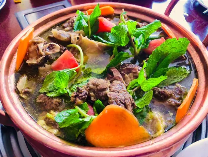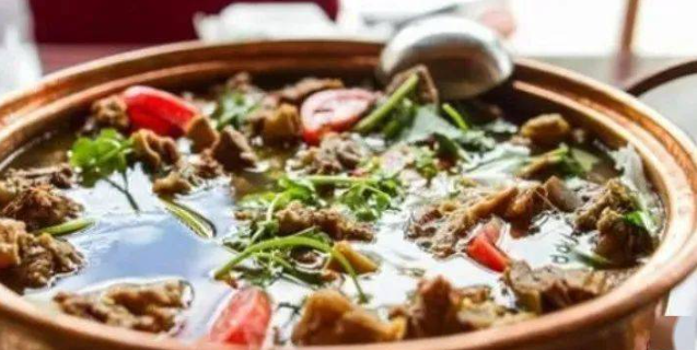 11111“锅奔”是藏语,指的是产于当地高山中的一种野生竹叶菜。吃此火锅,是好用铜制或土陶容器,味道更美。火锅以洋芋、豆腐、水发粉、锅奔和熟猪肚为主要原料。食用之后,有滋补养身、御寒暖身的功效。